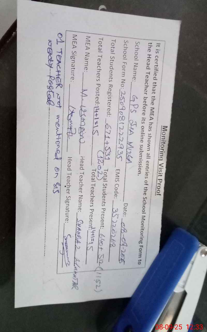 | EMIS Code: 35220268 | Name of School: GPS ISLAMIA JIA MUSA | |||