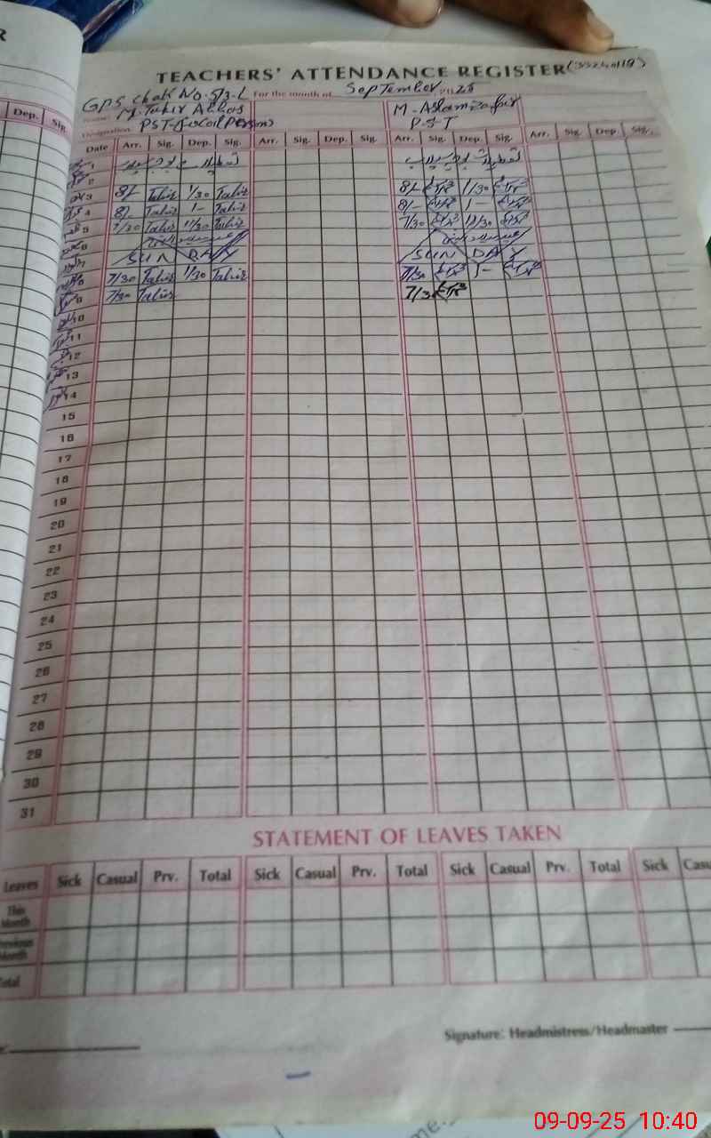 | Name: MTA**** AB**** Designation: (School Headmaster's/Headmistress's) PST Phone/Cell Number: 03**** |