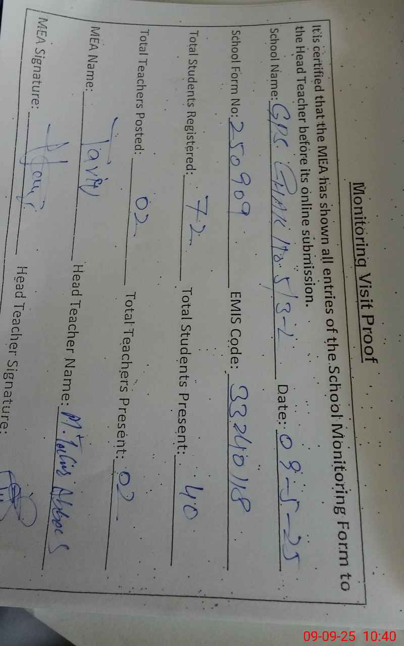| EMIS Code: 33240118 | Name of School: GPS CHAK NO 5/3 L | |||