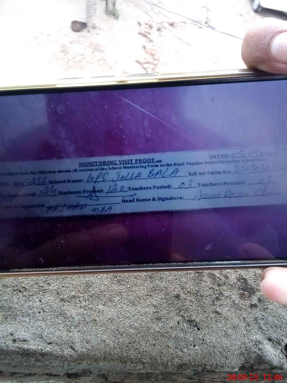 | EMIS Code: 38450256 | Name of School: GPS JALLA ZAREEN | |||