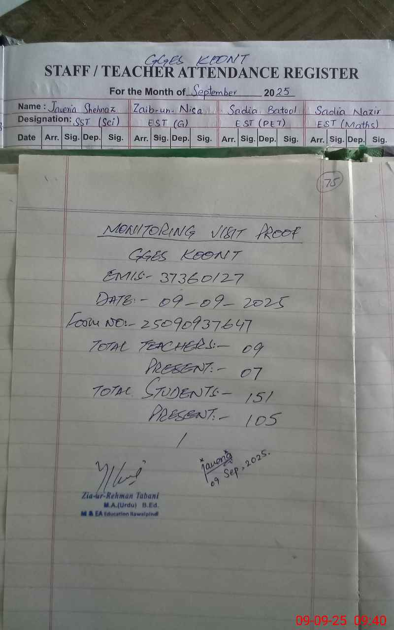 | Monitoring Date: 09-09-2025 | Start Time: 09-09-2025 09:00 AM | End Time: 09-09-2025 09:42 AM | Name of MEA: ZI**** URRE**** | |