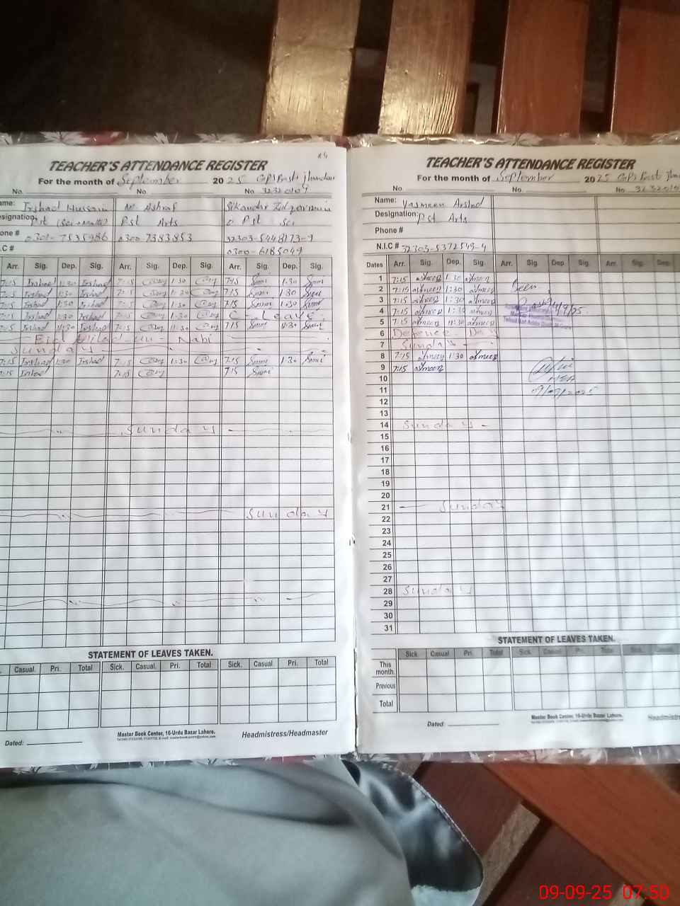 | CNIC | Full Name | Designation | R/C | Absence During Last Calender Month |