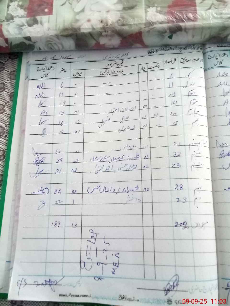 | Total Students Present | 0 | 0 | 6 | 11 | 9 | 13 | 18 | 14 | 20 | 29 | 21 | 26 | 22 | 189 | ||