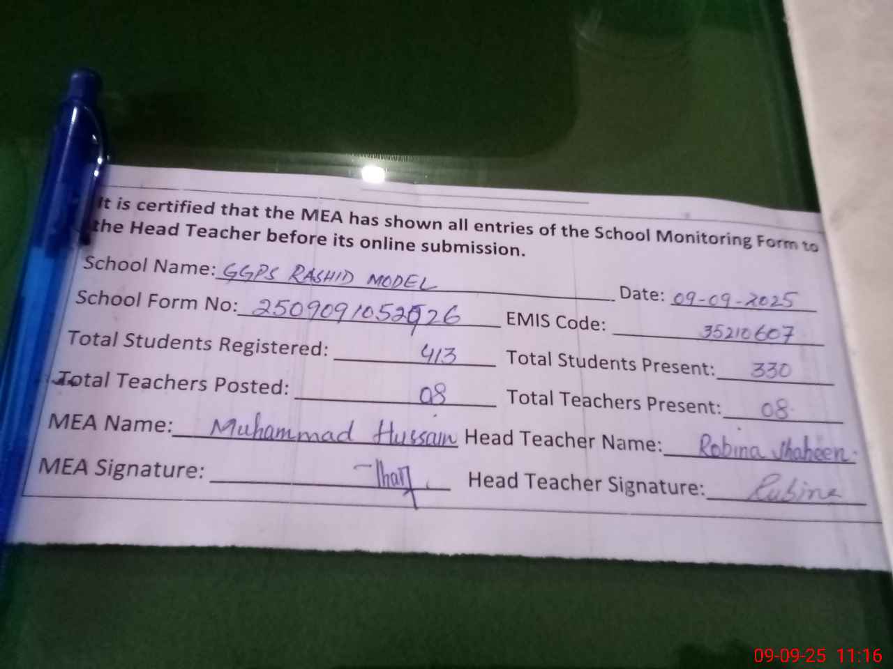 | EMIS Code: 35210607 | Name of School: GGPS RASHID MODEL | |||