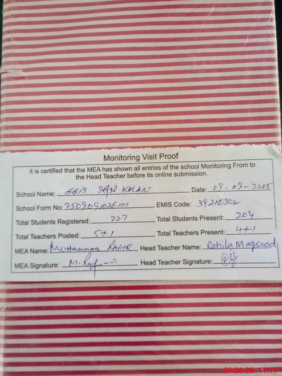 | Certified that this School was Inspected by the Undersigned MEA/DMO Today and the Information Stated Above is as Per Record. | |||||