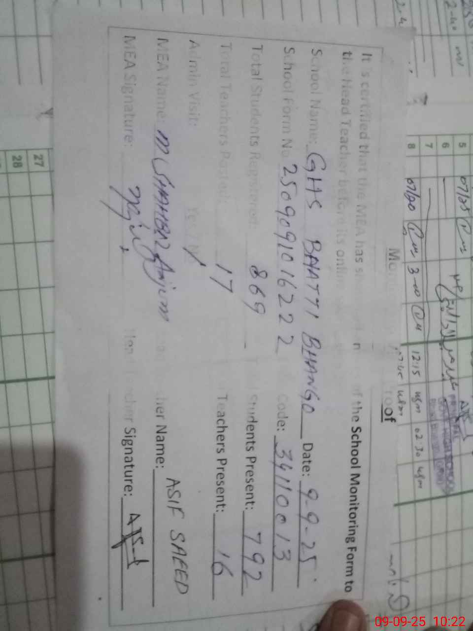 | Name: AS**** SA**** Designation: (School Headmaster's/Headmistress's) SR.HM Phone/Cell Number: 03**** |
