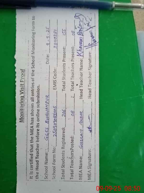 | Attendance Register | Head Teacher | MEA with School | Visit Proof |