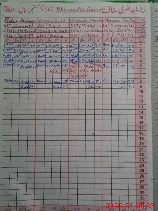 | Name: Kh**** Ba**** Designation: (School Headmaster's/Headmistress's) EST Phone/Cell Number: 03**** |