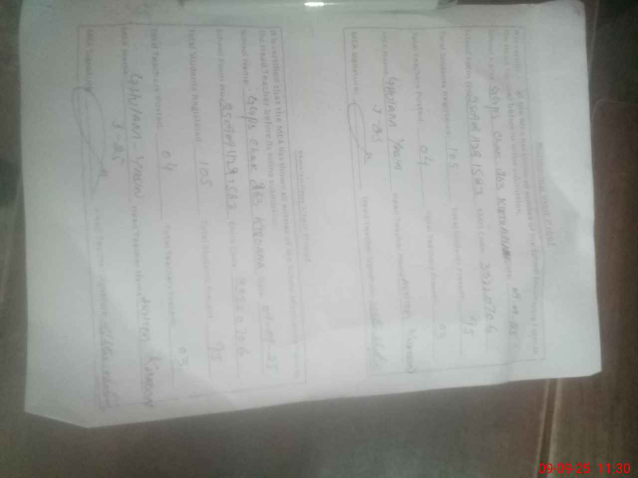 | Monitoring Date: 09-09-2025 | Start Time: 09-09-2025 10:51 AM | End Time: 09-09-2025 11:31 AM | Name of MEA: J-**** GH**** YA**** | |