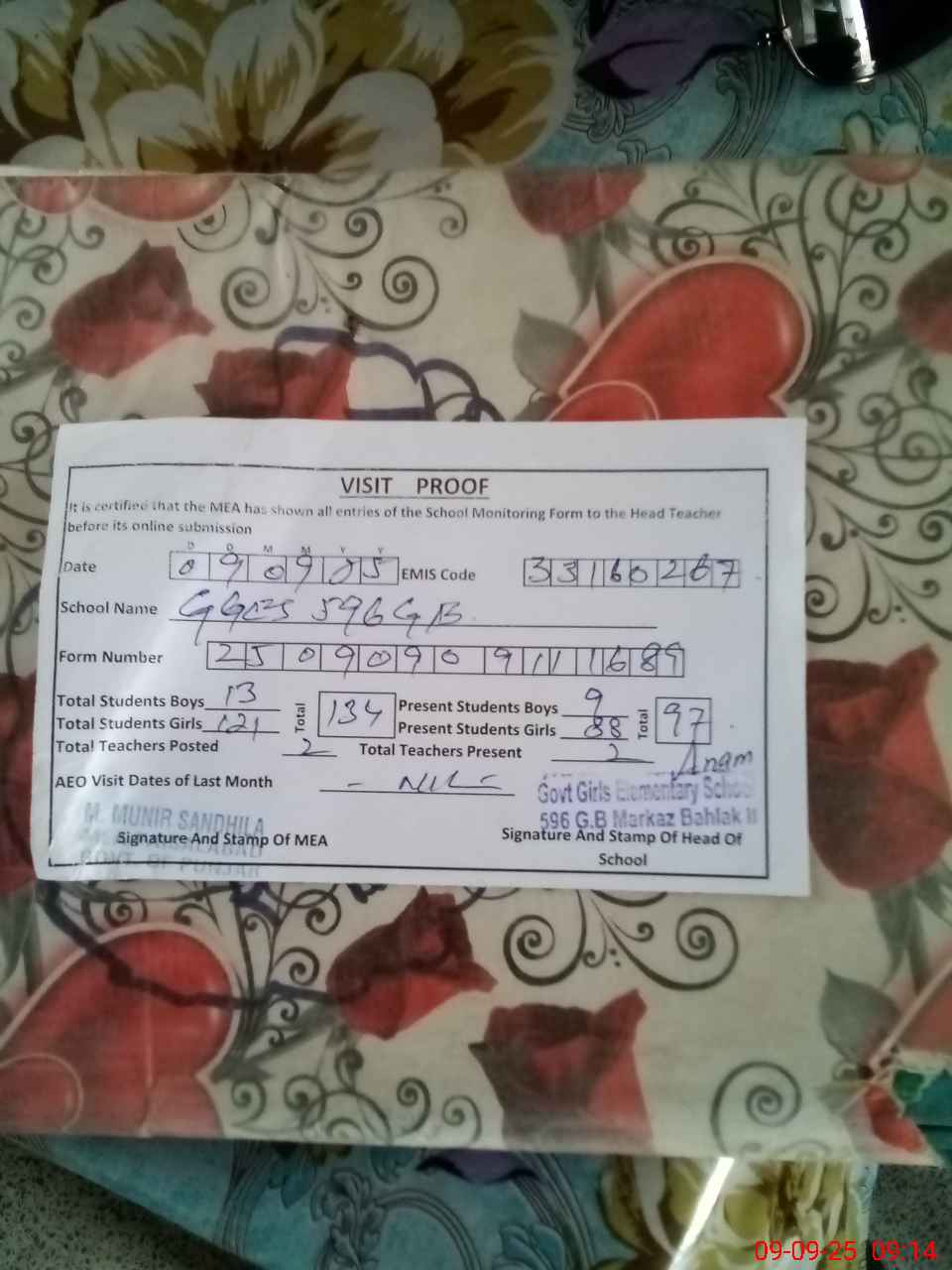 | Certified that this School was Inspected by the Undersigned MEA/DMO Today and the Information Stated Above is as Per Record. | |||||