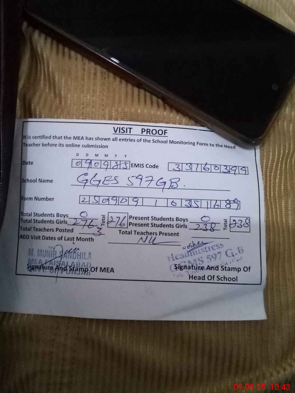 | Name: AF**** KH**** Designation: (School Headmaster's/Headmistress's) EST (SCIENCE ) Phone/Cell Number: 03**** |