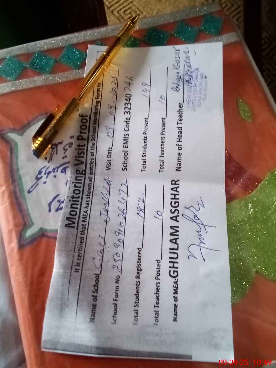 | Certified that this School was Inspected by the Undersigned MEA/DMO Today and the Information Stated Above is as Per Record. | |||||