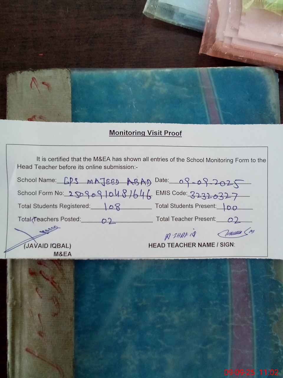 | EMIS Code: 32320327 | Name of School: GPS MAJEED ABAD | |||