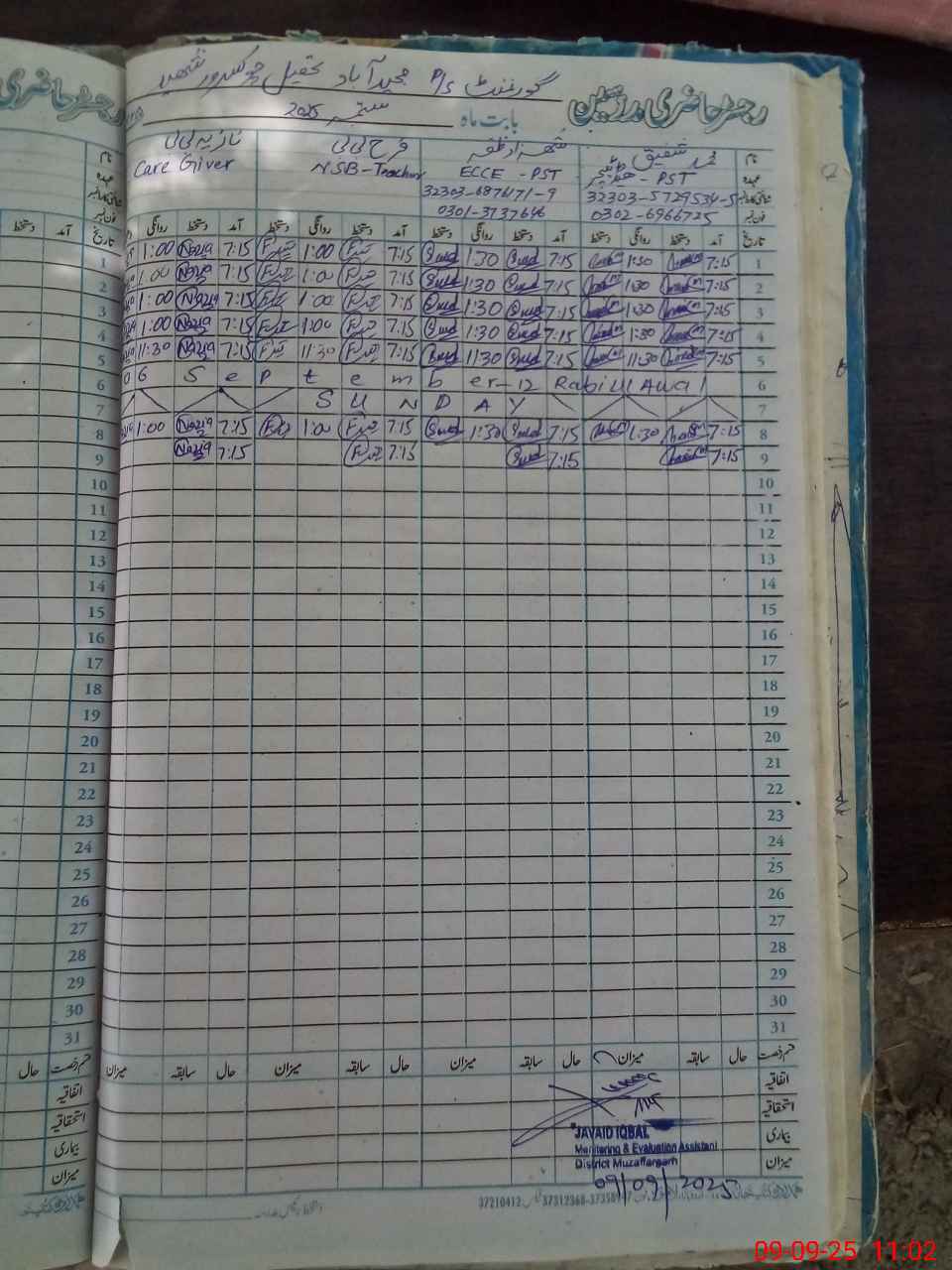 | Monitoring Date: 09-09-2025 | Start Time: 09-09-2025 10:48 AM | End Time: 09-09-2025 11:55 AM | Name of MEA: JA**** IQ**** | |