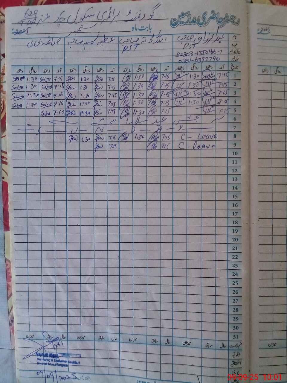 | Name: M.**** Designation: (School Headmaster's/Headmistress's) PST/PTC/JV Phone/Cell Number: 03**** |