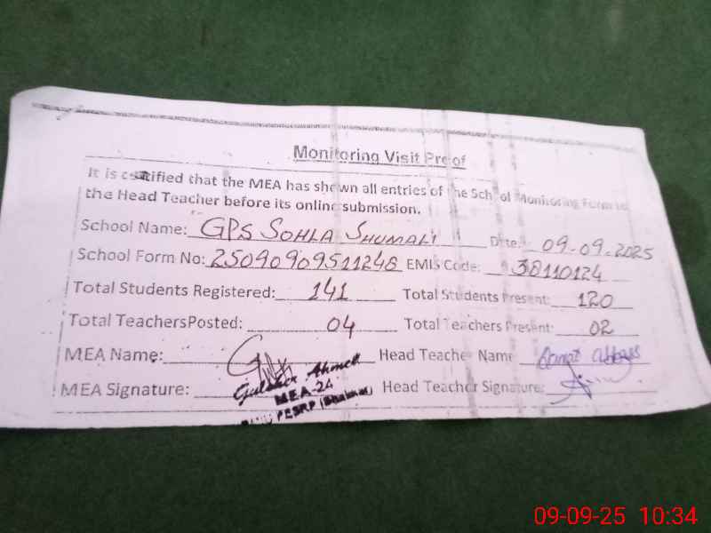 | EMIS Code: 38110124 | Name of School: GPS SOHLA SHUMALI | |||