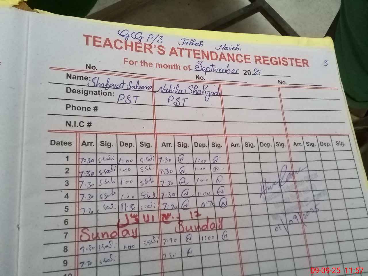 | Name: SH**** SA**** Designation: (School Headmaster's/Headmistress's) PST Phone/Cell Number: 03**** |