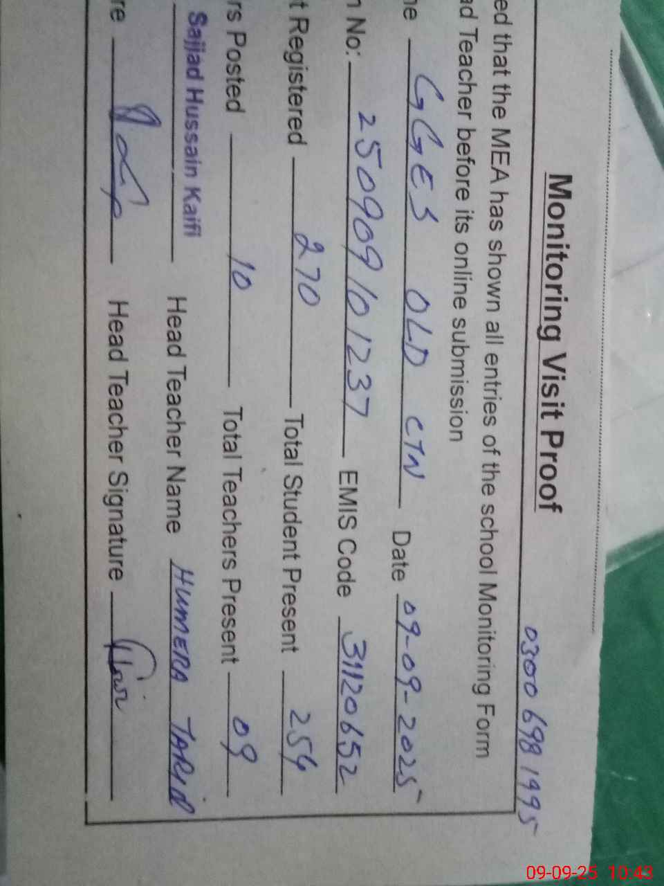 | EMIS Code: 31120652 | Name of School: GGES OLD CHISHTIAN | |||