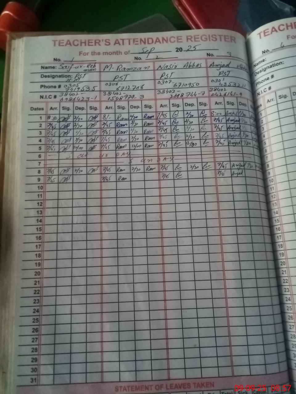 | Name: Sa**** UrRe**** Designation: (School Headmaster's/Headmistress's) PST Phone/Cell Number: 03**** |