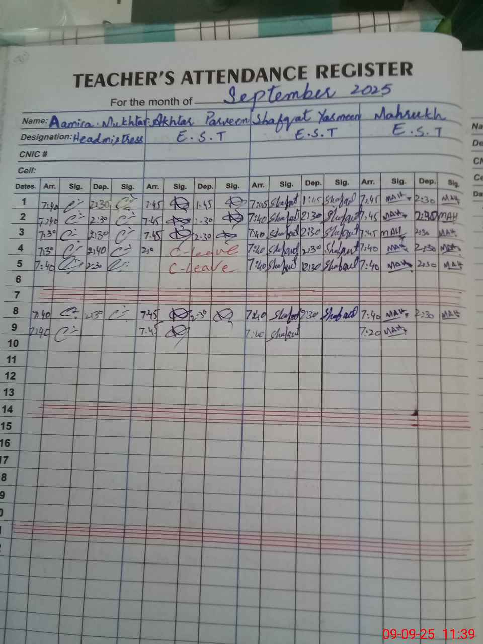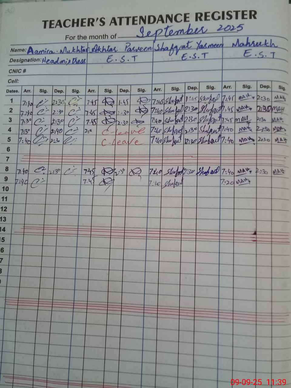 | Name: Aa**** Mu**** Designation: (School Headmaster's/Headmistress's) Head Mistress Phone/Cell Number: 03**** |