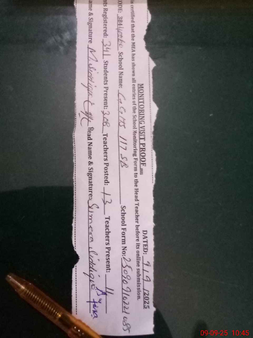 | Attendance Register | Head Teacher | MEA with School | Visit Proof |