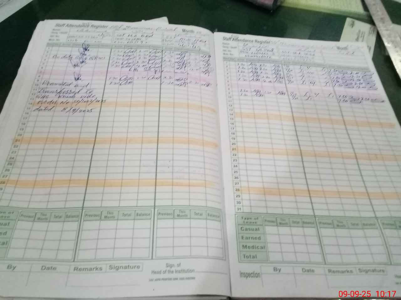 Leave Type | Remarks for Today (Leave,Training, Exam,Absent,Late, Other Duty) |