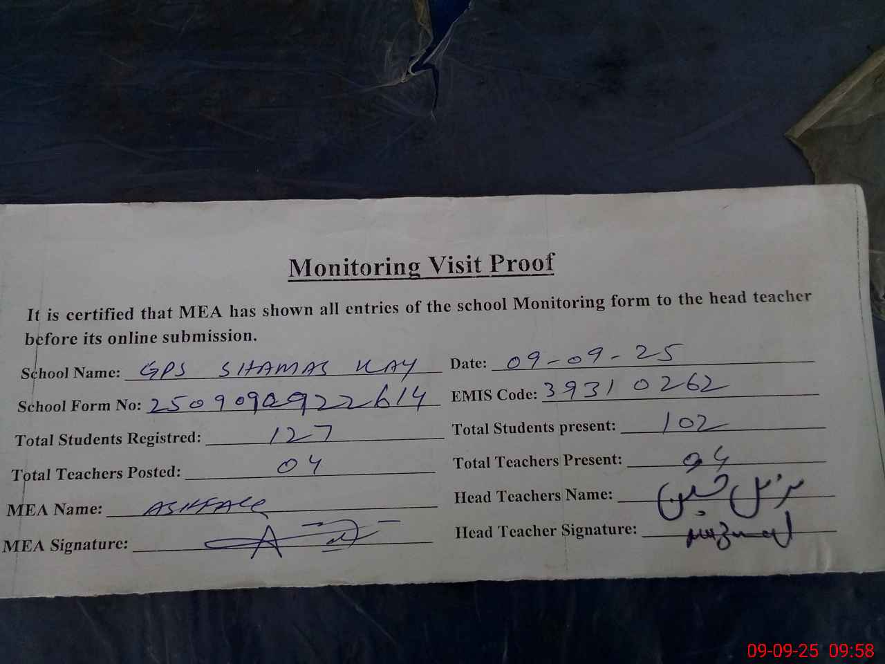 | EMIS Code: 39310262 | Name of School: GPS SHAMAS KAY | |||