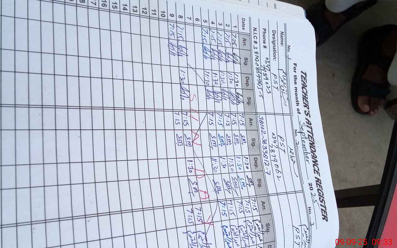 | Name: II**** AH**** Designation: (School Headmaster's/Headmistress's) PTC/JV Phone/Cell Number: 03**** |