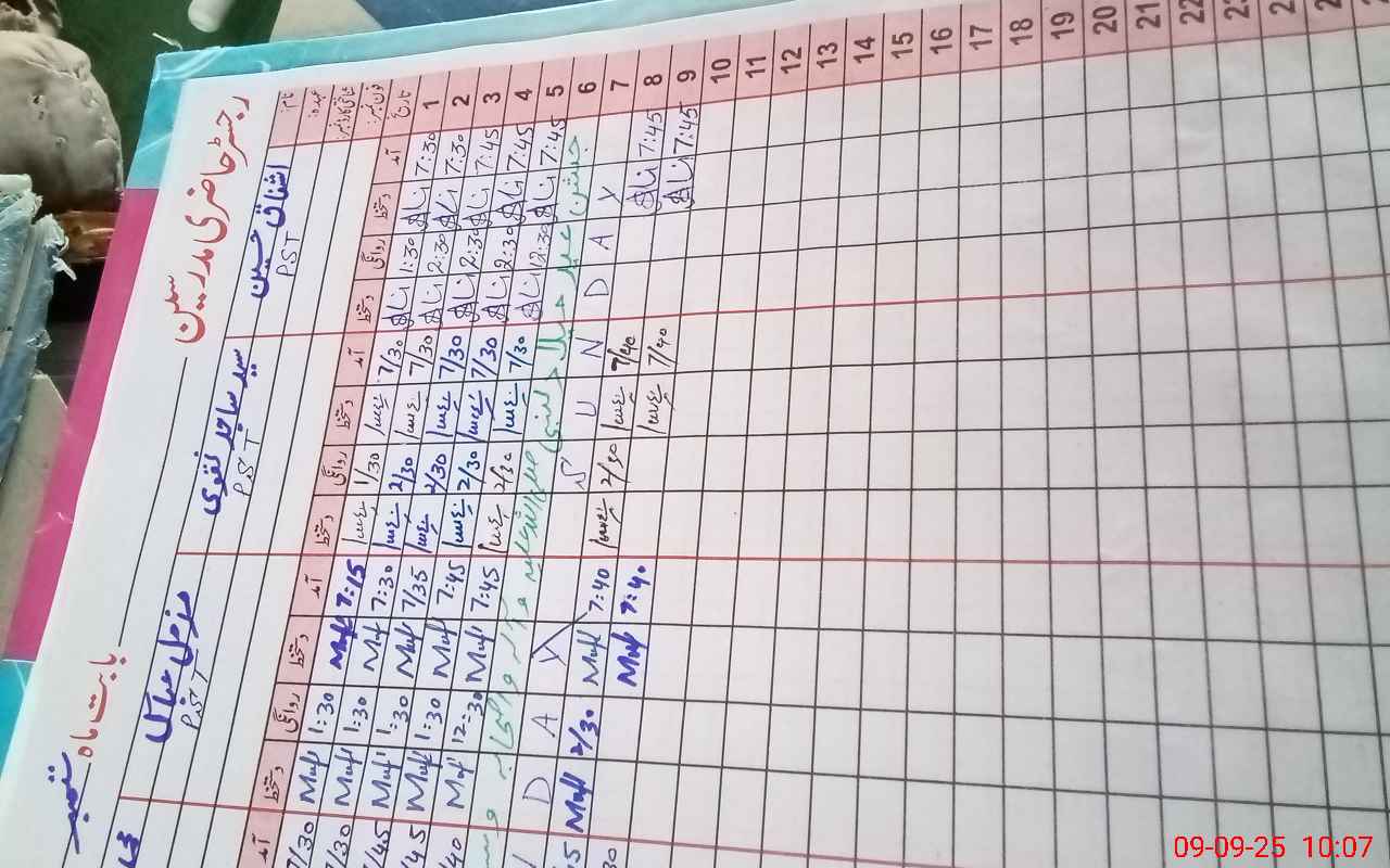 | CNIC | Full Name | Designation | R/C | Absence During Last Calender Month |
