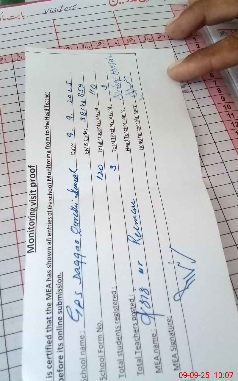 | EMIS Code: 38140859 | Name of School: GPS DAGAR QURESHI SHUMAL SHARKI | |||