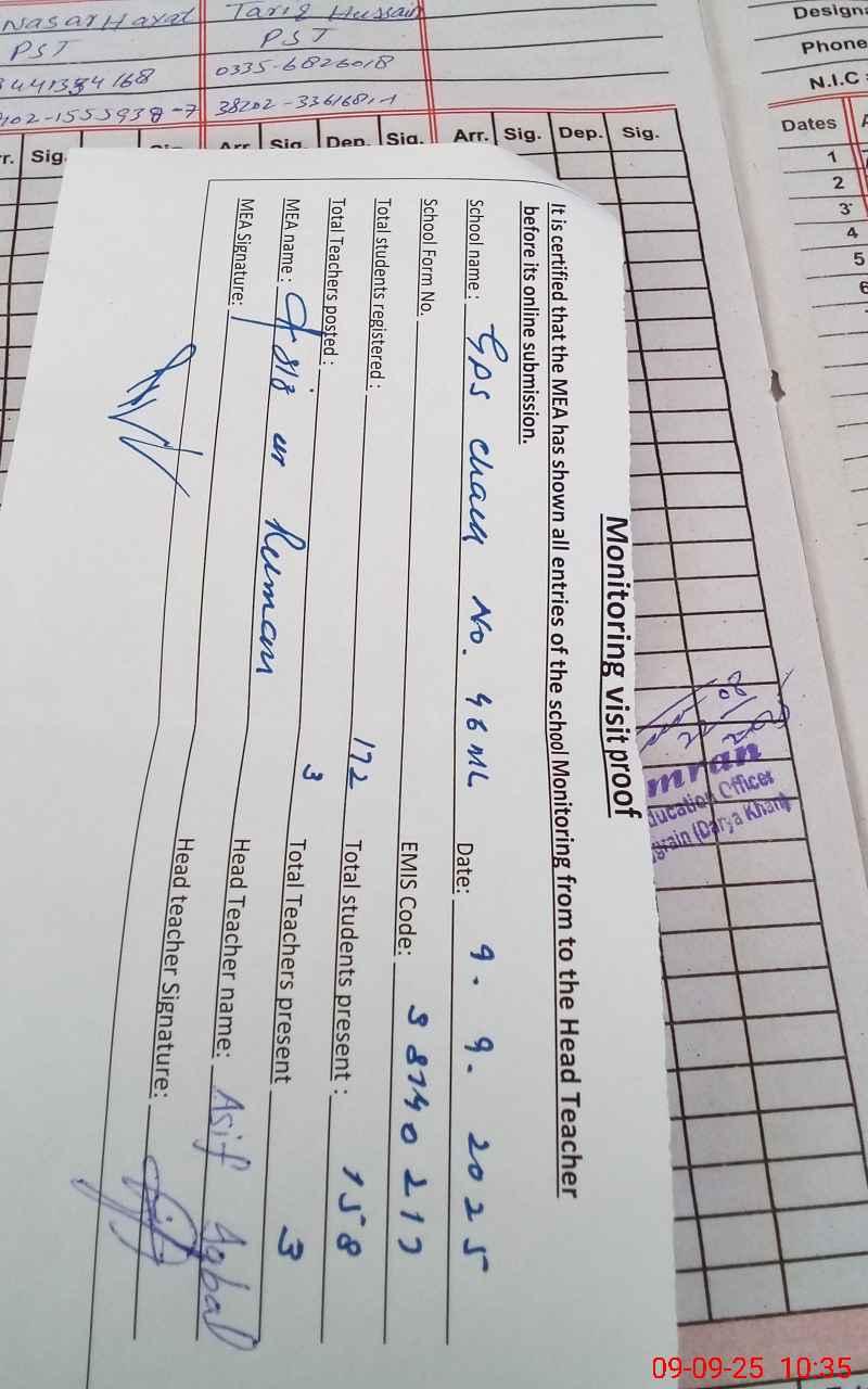 | EMIS Code: 38140217 | Name of School: GPS CHAK NO 46 M L | |||