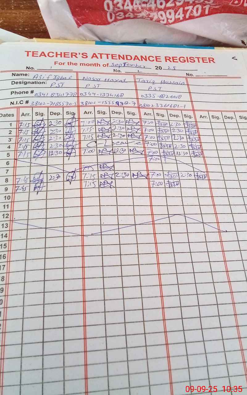 | Name: NA**** HA**** Designation: (School Headmaster's/Headmistress's) ESE SCIENCE MATH Phone/Cell Number: 03**** |