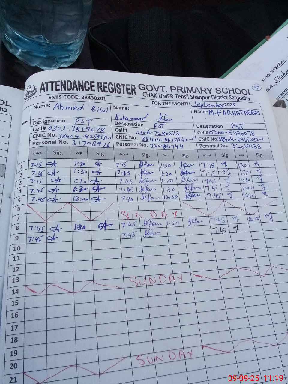 | Name: AH**** BI**** Designation: (School Headmaster's/Headmistress's) PST (Sc-Math) Phone/Cell Number: 03**** |