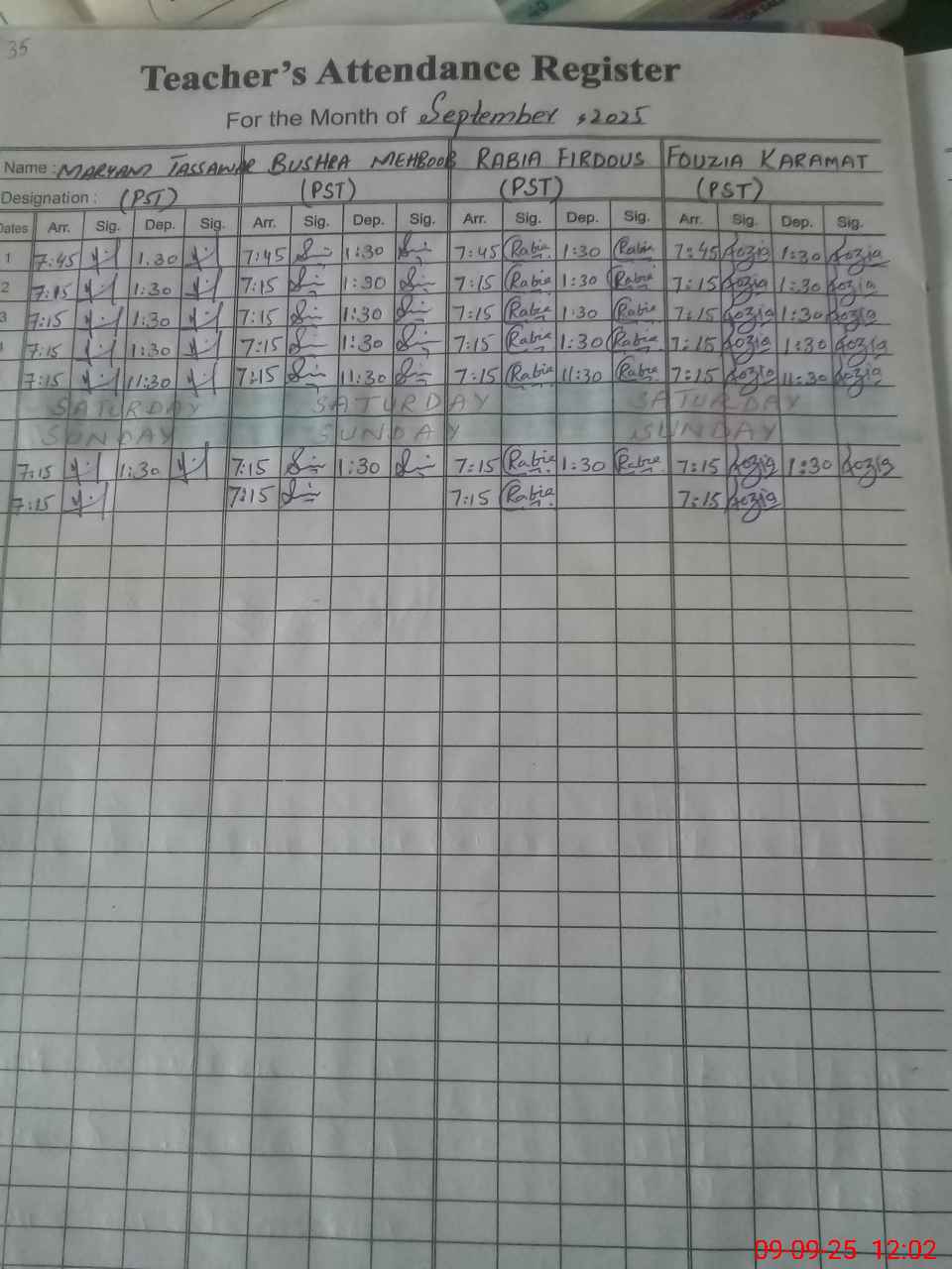 | Monitoring Date: 09-09-2025 | Start Time: 09-09-2025 11:30 AM | End Time: 09-09-2025 12:02 PM | Name of MEA: Qa**** Za**** | |