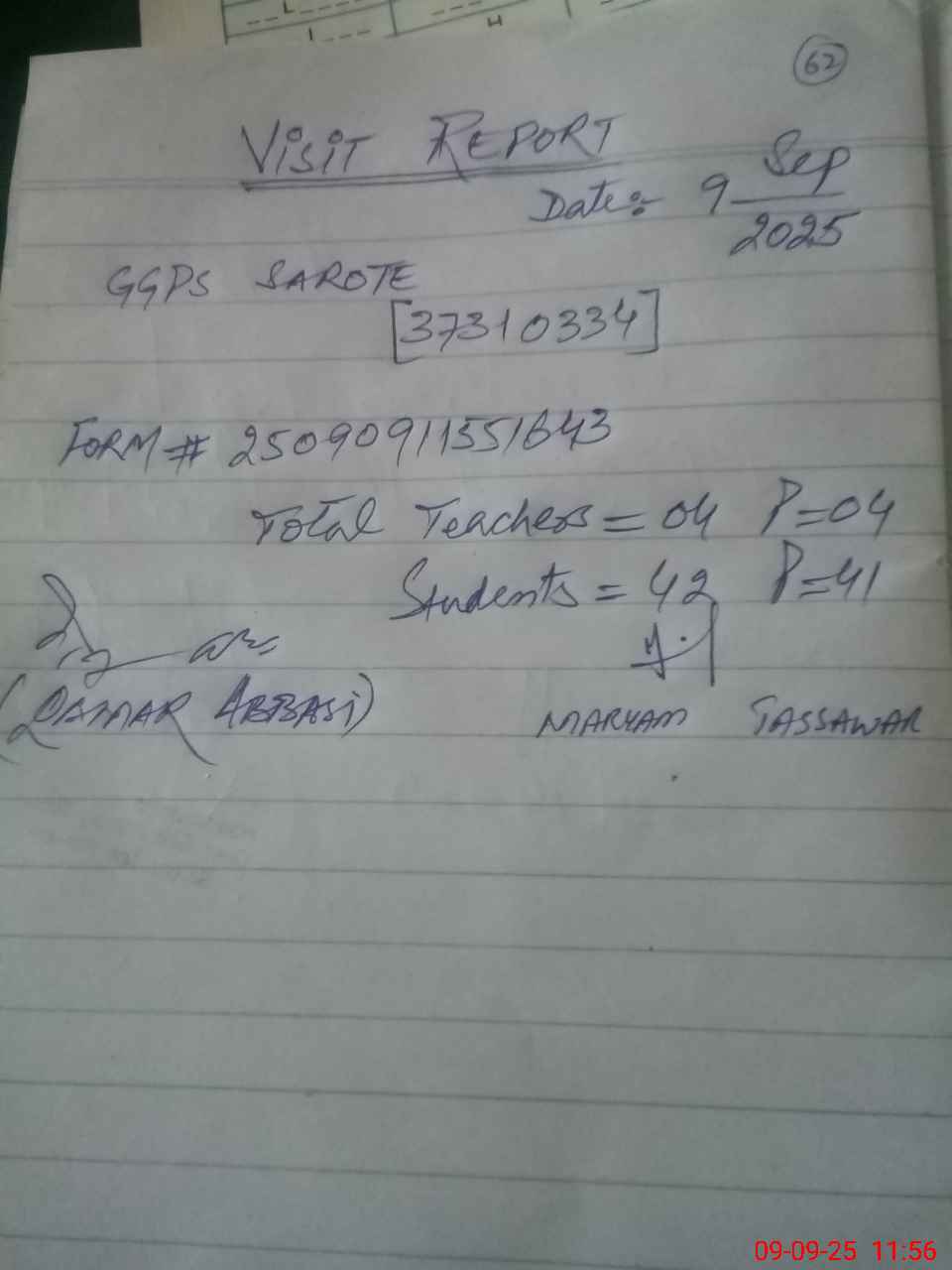 | Attendance Register | Head Teacher | MEA with School | Visit Proof |