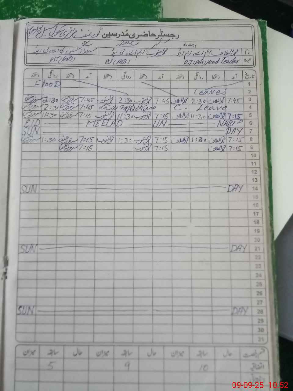 | Name: MU**** AL**** Designation: (School Headmaster's/Headmistress's) PST Phone/Cell Number: 03**** |