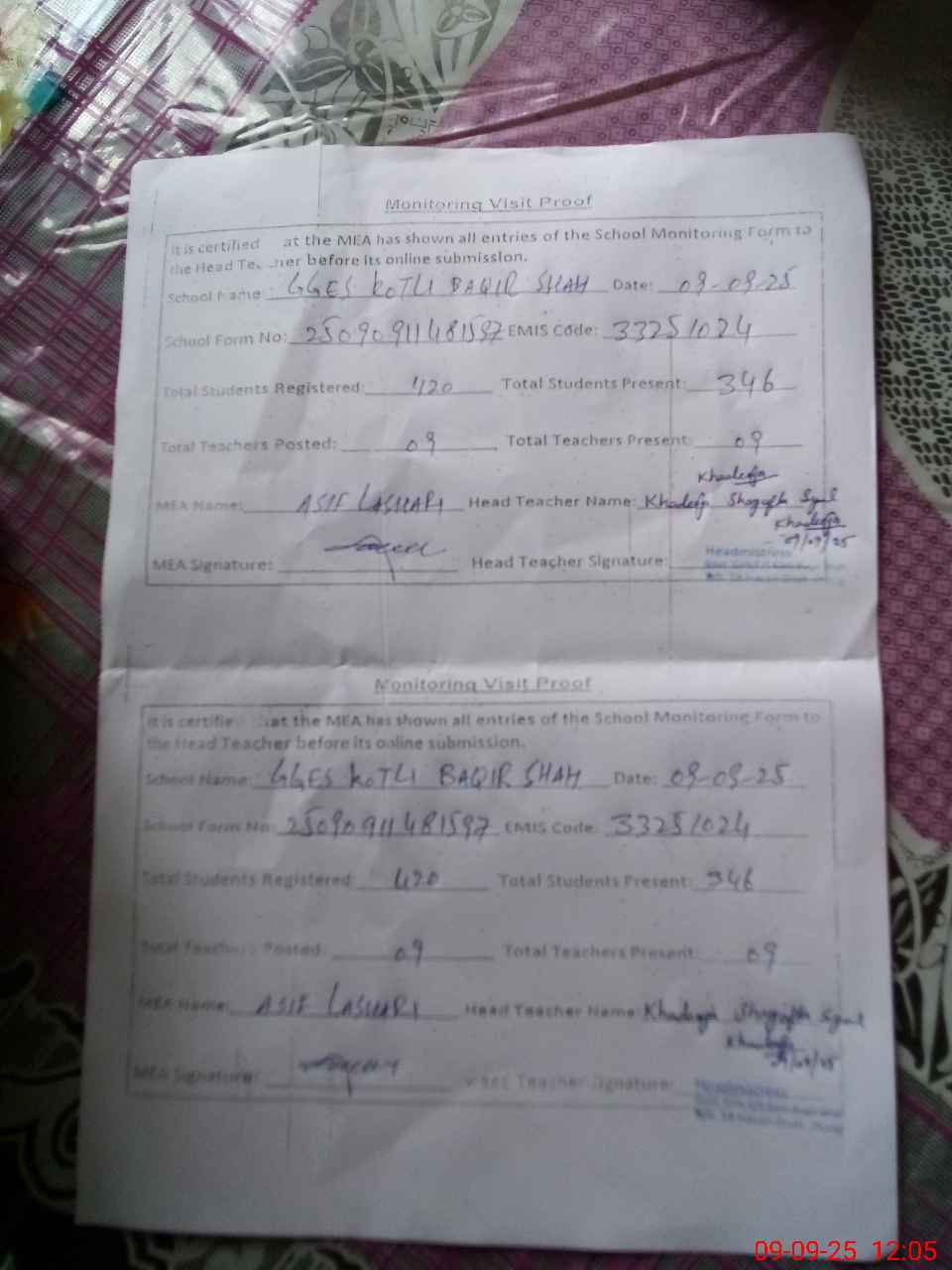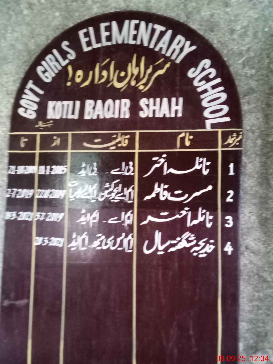 | EMIS Code: 33251024 | Name of School: GGES KOTLI BAQIR SHAH | |||