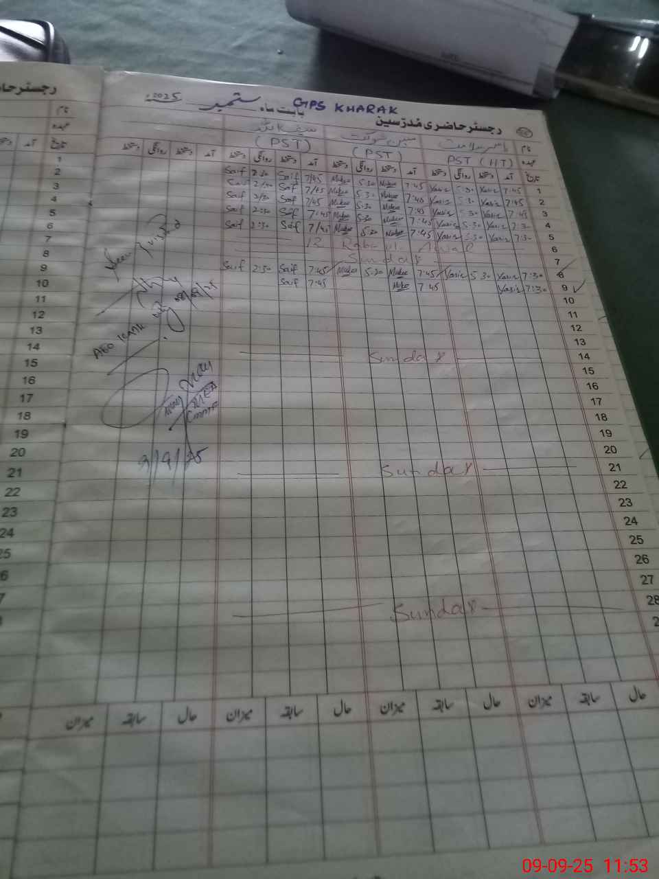 | CNIC | Full Name | Designation | R/C | Absence During Last Calender Month |