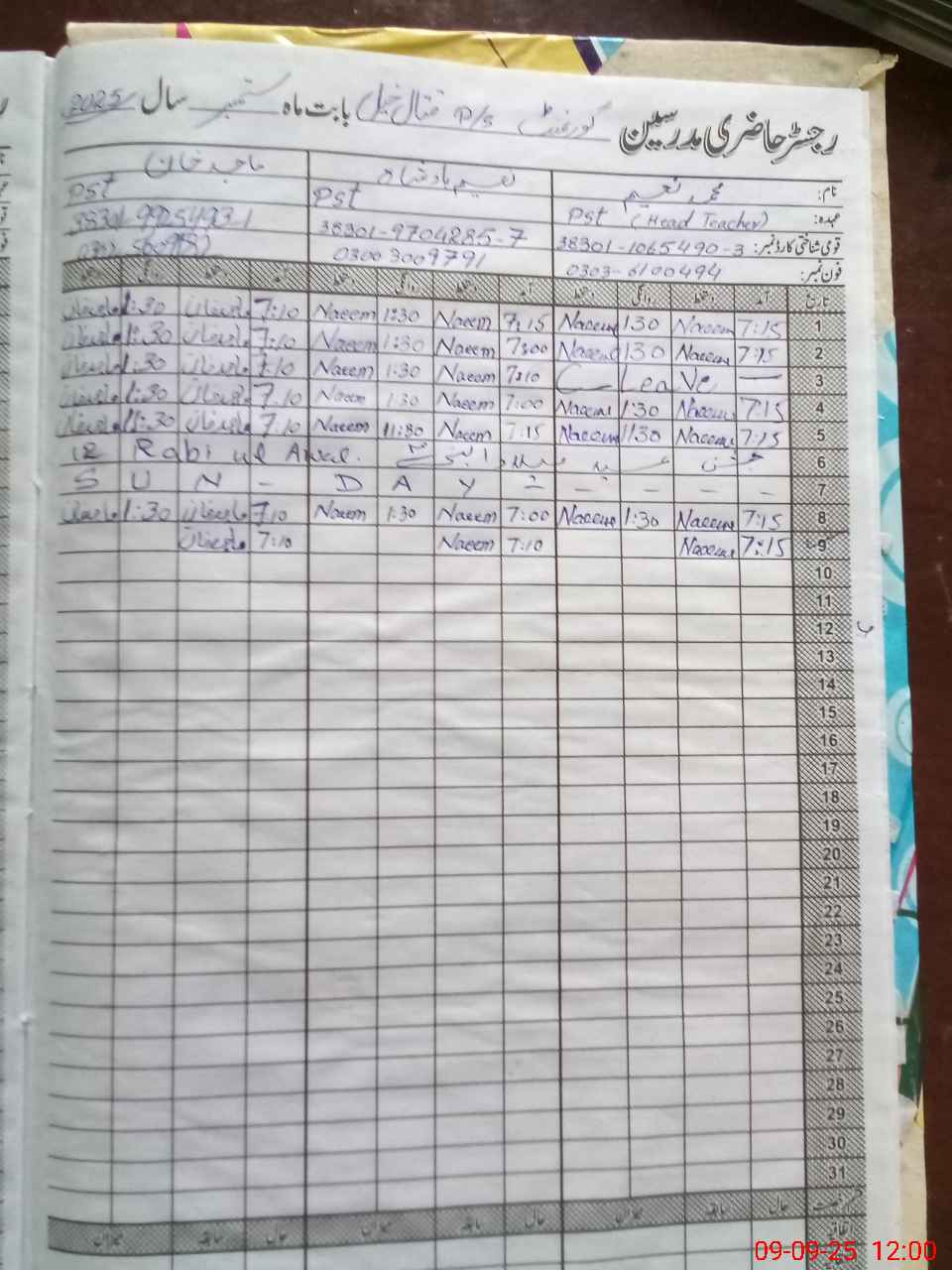 | Name: Mu**** Na**** Designation: (School Headmaster's/Headmistress's) PST Phone/Cell Number: 03**** |
