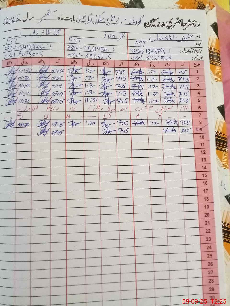 | Name: GU**** NA**** KH**** Designation: (School Headmaster's/Headmistress's) PST Phone/Cell Number: 03**** |