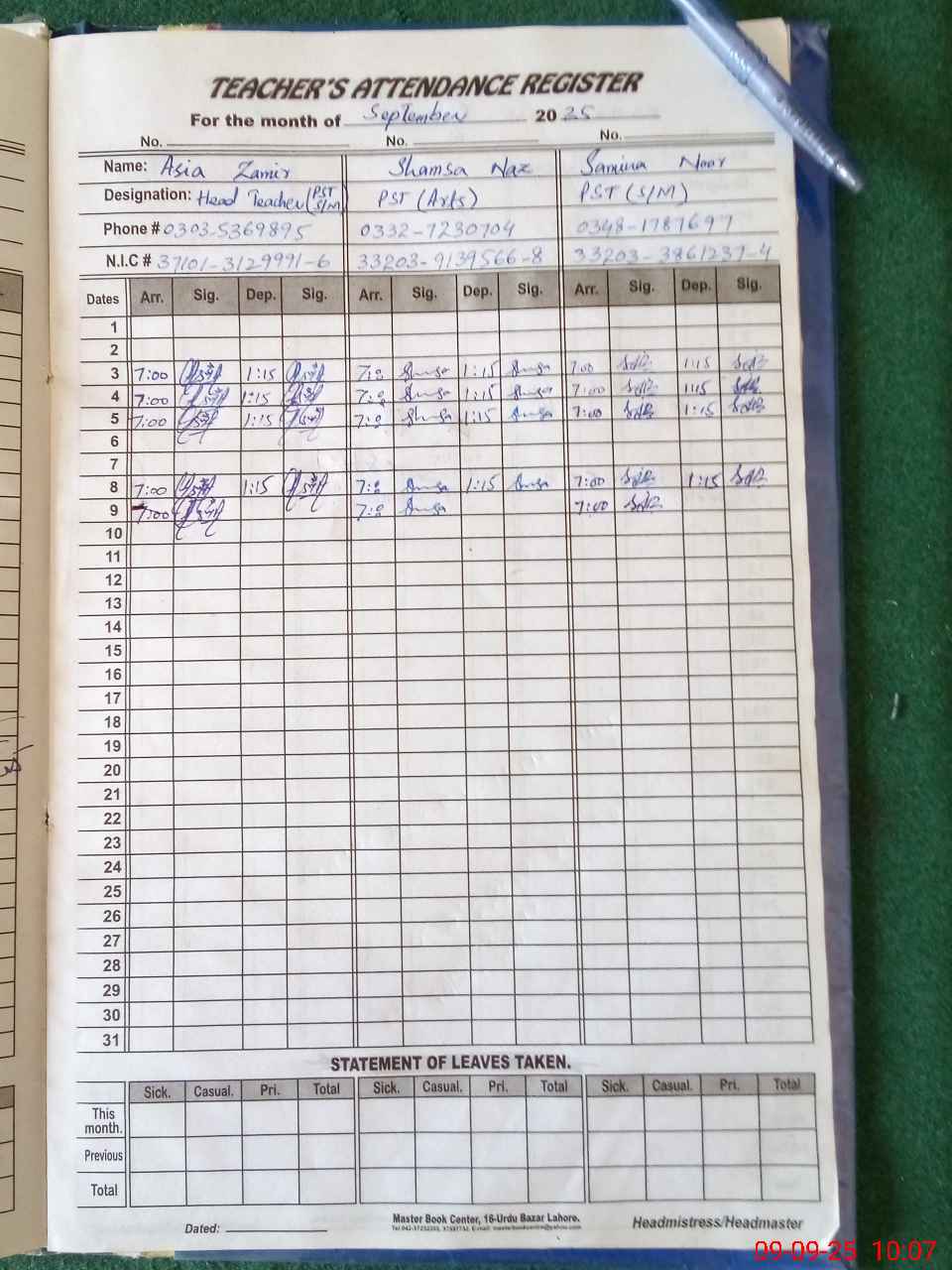 | Name: AS**** ZA**** Designation: (School Headmaster's/Headmistress's) PST Phone/Cell Number: 03**** |