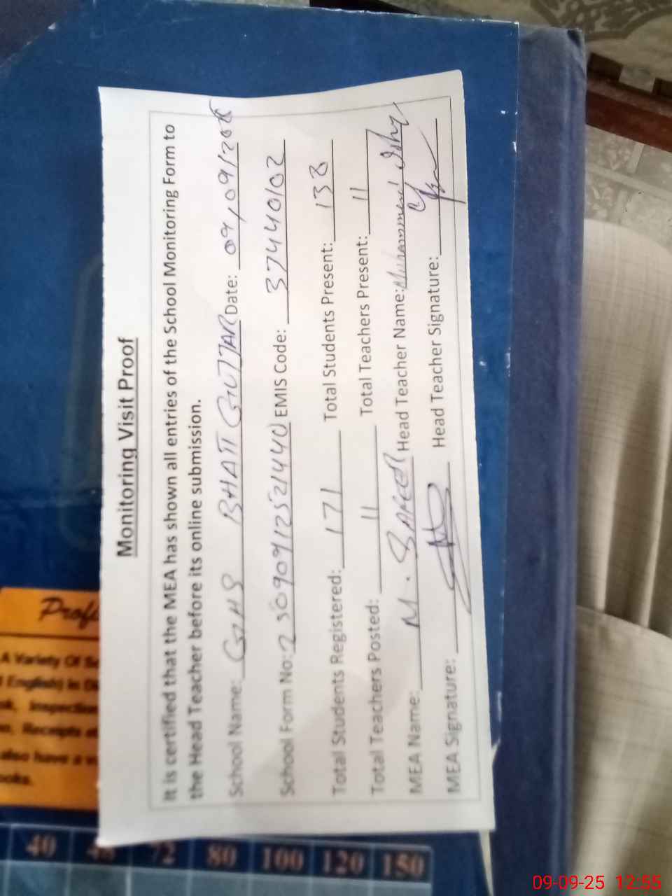 | EMIS Code: 37440102 | Name of School: GHS BHATTI GUJJAR | |||