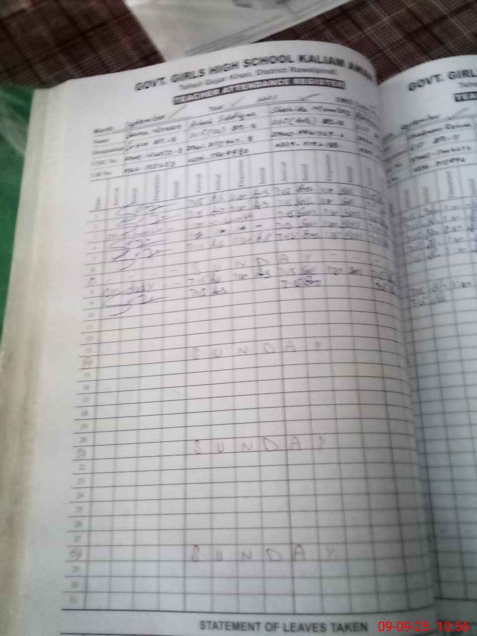 | CNIC | Full Name | Designation | R/C | Absence During Last Calender Month |