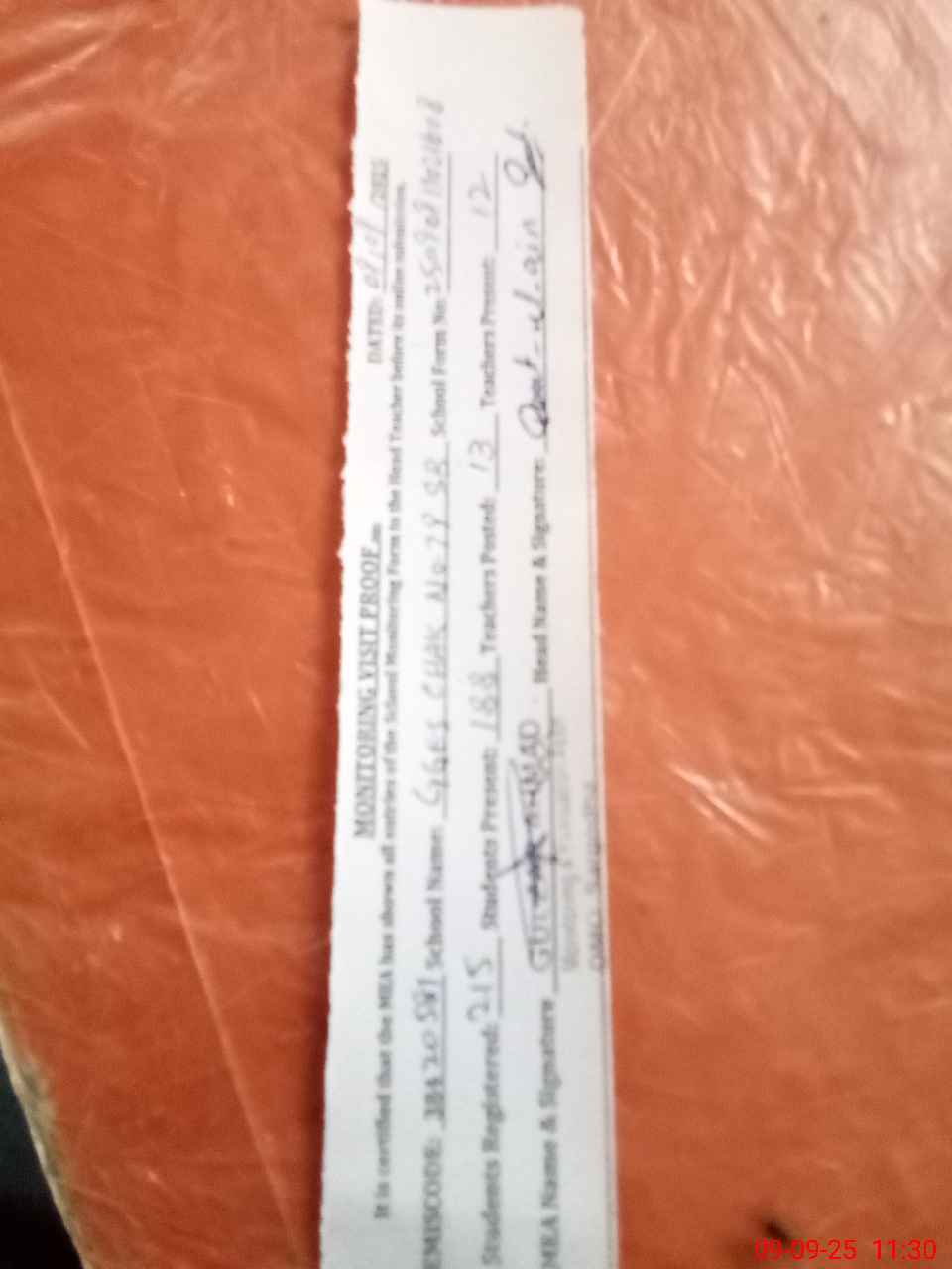 | Attendance Register | Head Teacher | MEA with School | Visit Proof |