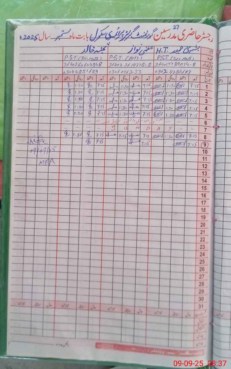 | Name: Uz**** Na**** Designation: (School Headmaster's/Headmistress's) PST Phone/Cell Number: 03**** |