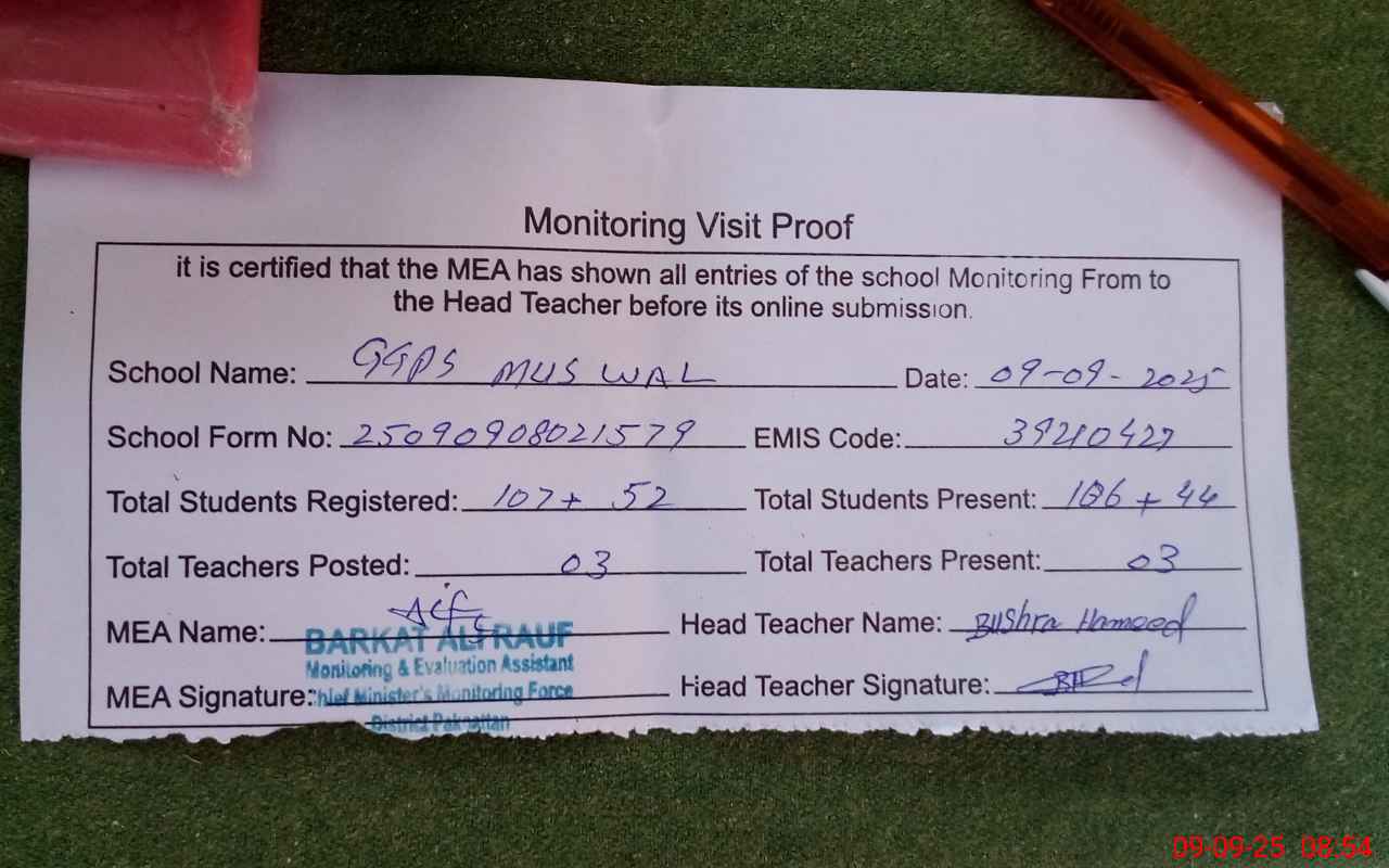 | EMIS Code: 39210427 | Name of School: GGPS MUSE WAL | |||