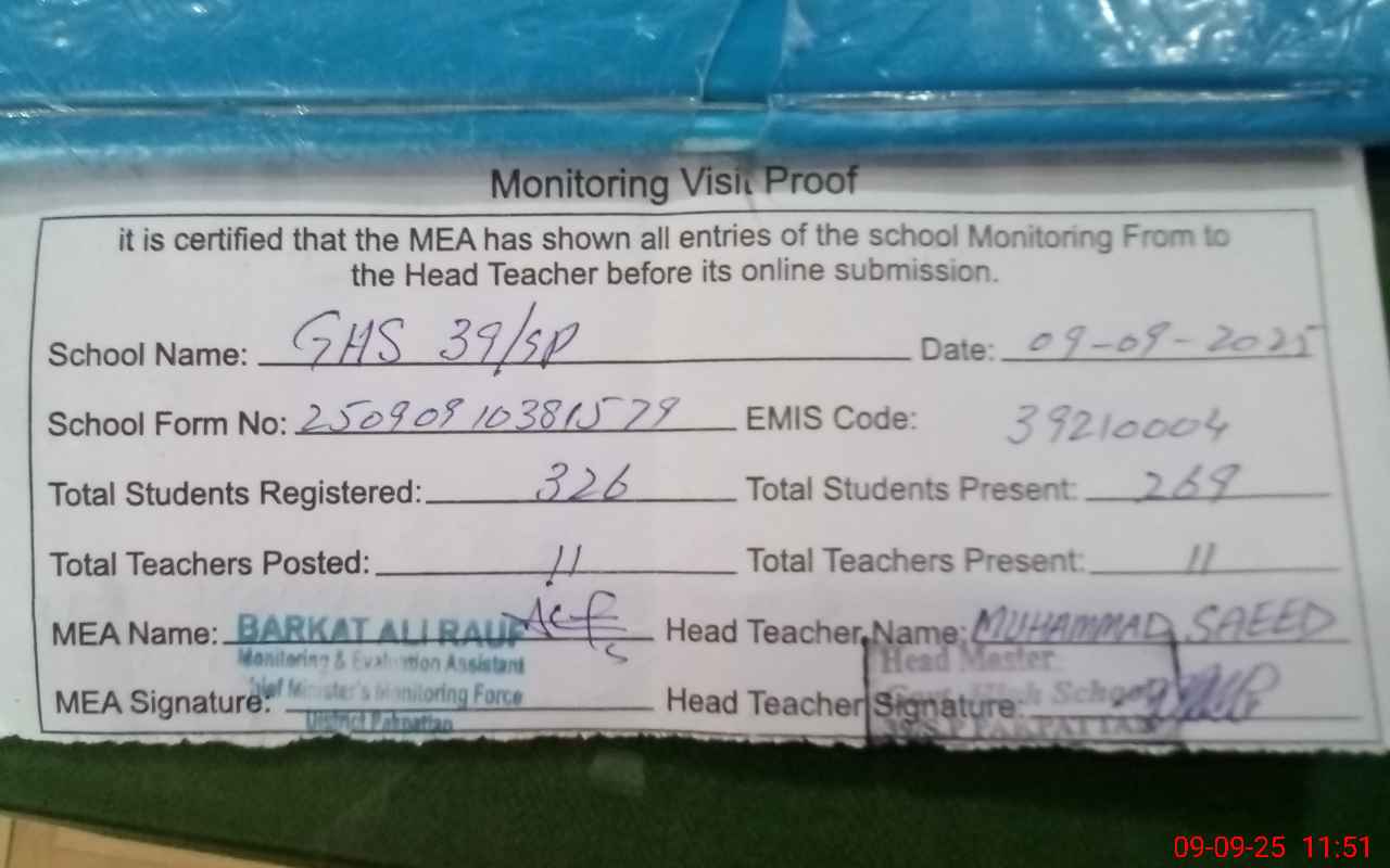 | EMIS Code: 39210004 | Name of School: GHS 39/S.P | |||