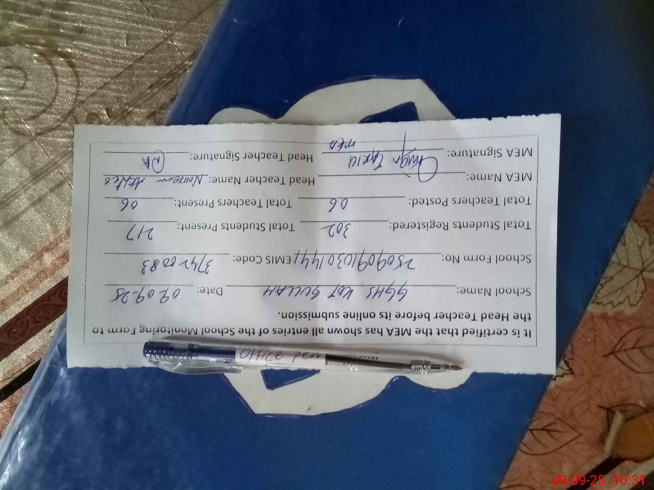| Certified that this School was Inspected by the Undersigned MEA/DMO Today and the Information Stated Above is as Per Record. | |||||