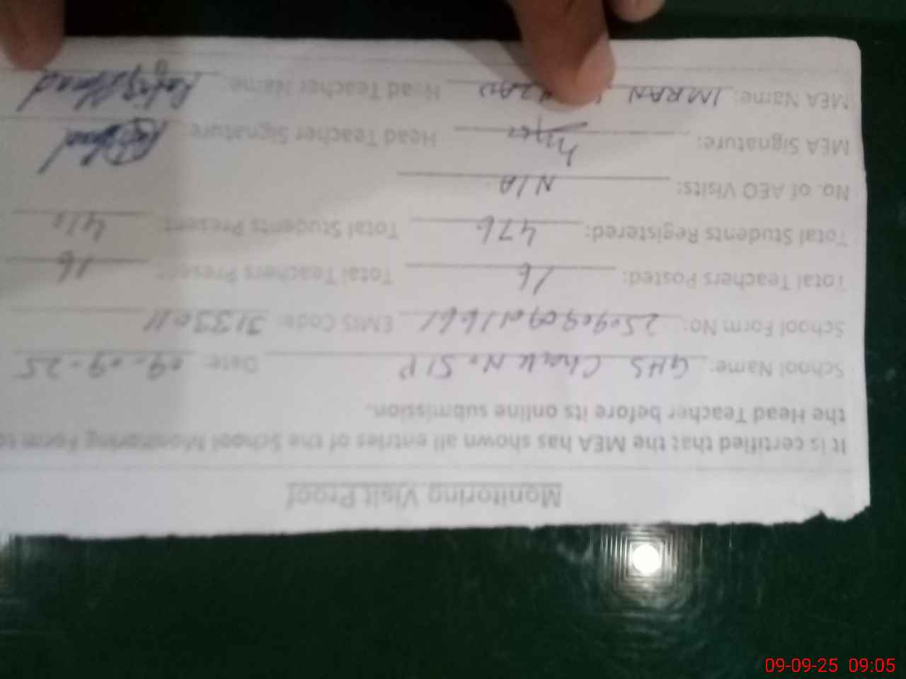 | Monitoring Date: 09-09-2025 | Start Time: 09-09-2025 08:30 AM | End Time: 09-09-2025 09:20 AM | Name of MEA: Im**** Sh**** | |