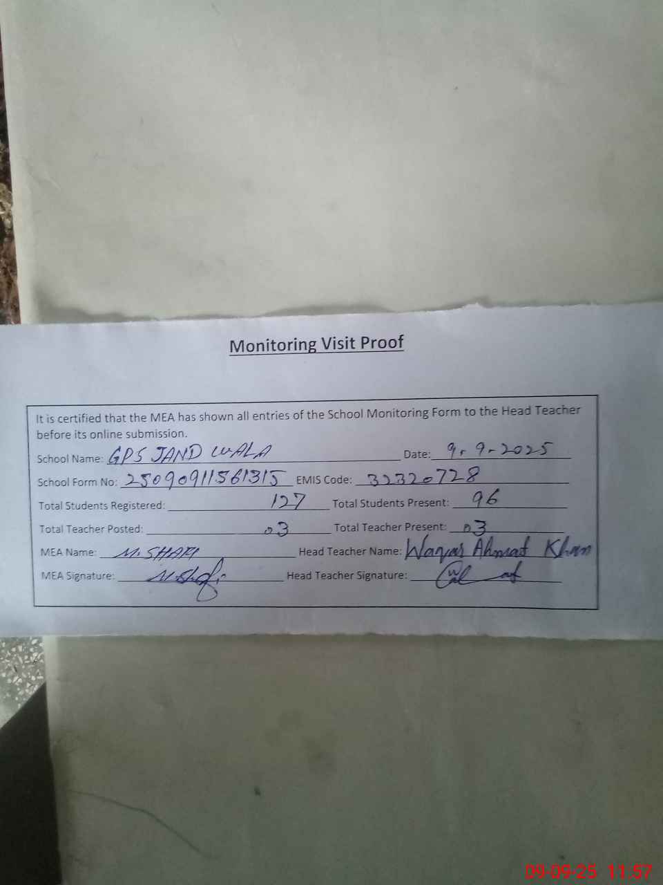 | EMIS Code: 32320728 | Name of School: GPS JAND WALA | |||
